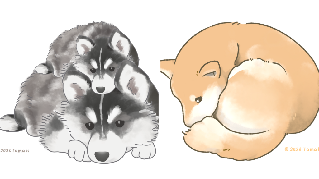 ある日、お客様がInstagramで目に留めてくださったのが、私が描いた「ハスキー親子」と「まあるい茶柴」でした。